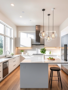 Lighting fixtures are not just functional-they’re also design statements. Choose styles that reinforce your kitchen’s aesthetic: